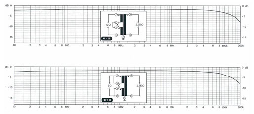 - レンジも充分に確保し、高音域は-1dbで80kHz、2.2dbで120kHzまで伸びています。また低レベル時のS/Nの良さはこれまでのトランスとは全く異なり、ハイエンドアンプと組み合わせた時、その質の高さをいっそう感じることができるはずです。